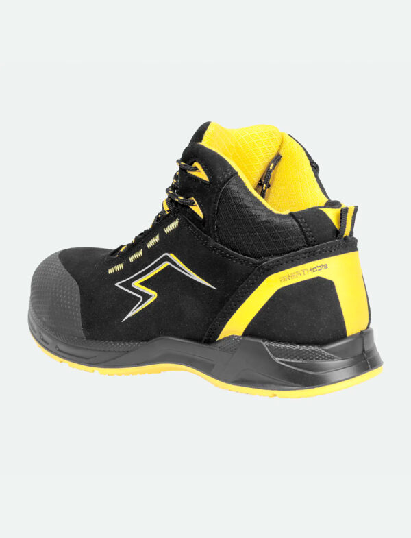 Die neue moderne Grip-Control-Laufsohle bietet die beste Kombination aus Sicherheit und Komfort, auch bei aktivem Gebrauch der Schuhe. Die Zwischenschicht aus Polyurethan ist mit antistatischen Zusätzen versehen, während die stoßdämpfenden Eigenschaften die Energie bei intensiven Belastungen dämpfen. Die Laufschicht ist eine spezielle Zusammensetzung aus TPU, die ebenfalls antistatische Eigenschaften aufweist. Dank moderner Technologien haben wir das Spitzengewicht der Laufsohle erreicht, das sich direkt auf das Gewicht des gesamten Schuhs auswirkt. Die neue Entwicklung ist nicht weniger einzigartig: 85% der Lauffläche besteht aus kleinen gleichseitigen Dreiecken, deren Kanten in verschiedene Richtungen ausgerichtet sind. Eine solche Konstruktion steuert die Positionierung des Fußes auf einer rutschigen oder unebenen Oberfläche. Damit hält jede Seite eines solchen Dreiecks sicher das Gleiten in jede Richtung. Die Vorderseite der Außensohle ist in Flex-Zonen unterteilt, die eine einfache Bewegung ermöglichen. Die Fersenzone hat eine optimale Kontaktfläche mit der Oberfläche, was zu einem besseren Gleichgewicht in einer statischen Position oder in der Bewegung führt