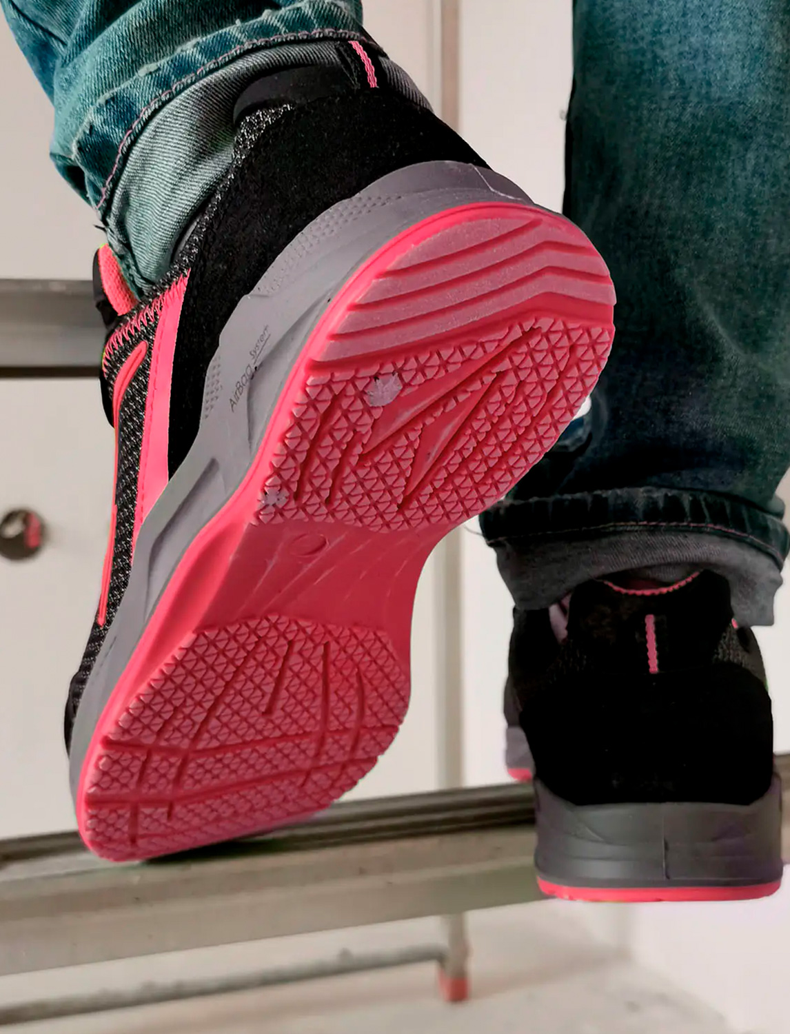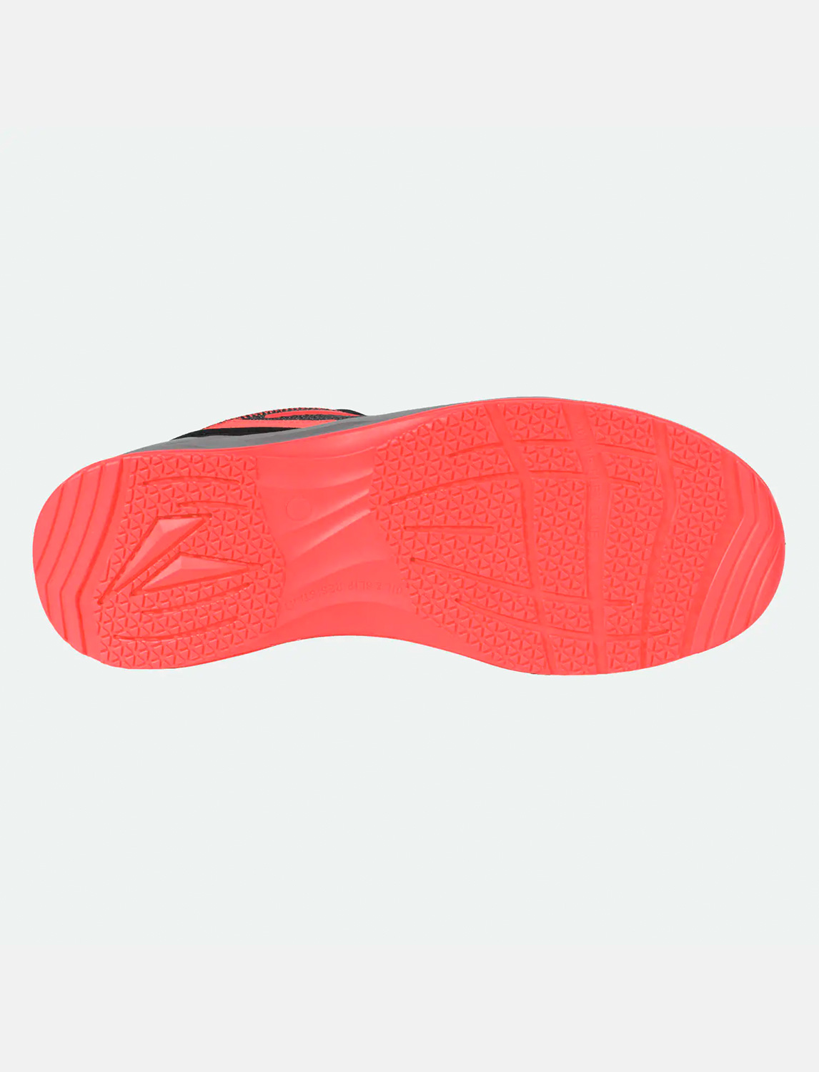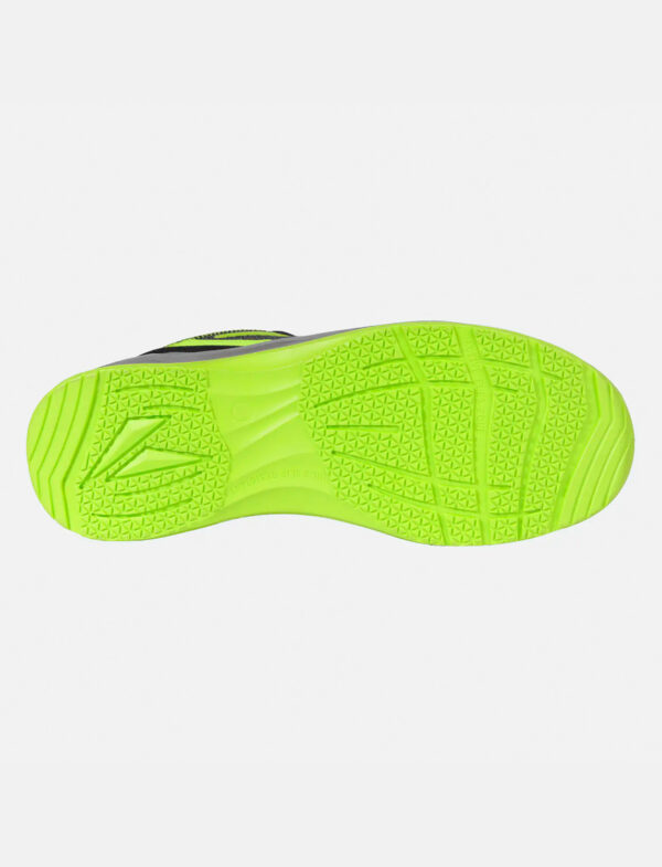 Die neue moderne Grip-Control-Laufsohle bietet die beste Kombination aus Sicherheit und Komfort, auch bei aktivem Gebrauch der Schuhe. Die Zwischenschicht aus Polyurethan ist mit antistatischen Zusätzen versehen, während die stoßdämpfenden Eigenschaften die Energie bei intensiven Belastungen dämpfen. Die Laufschicht ist eine spezielle Zusammensetzung aus TPU, die ebenfalls antistatische Eigenschaften aufweist. Dank moderner Technologien haben wir das Spitzengewicht der Laufsohle erreicht, das sich direkt auf das Gewicht des gesamten Schuhs auswirkt. Die neue Entwicklung ist nicht weniger einzigartig: 85% der Lauffläche besteht aus kleinen gleichseitigen Dreiecken, deren Kanten in verschiedene Richtungen ausgerichtet sind. Eine solche Konstruktion steuert die Positionierung des Fußes auf einer rutschigen oder unebenen Oberfläche. Damit hält jede Seite eines solchen Dreiecks sicher das Gleiten in jede Richtung. Die Vorderseite der Außensohle ist in Flex-Zonen unterteilt, die eine einfache Bewegung ermöglichen. Die Fersenzone hat eine optimale Kontaktfläche mit der Oberfläche, was zu einem besseren Gleichgewicht in einer statischen Position oder in der Bewegung führt