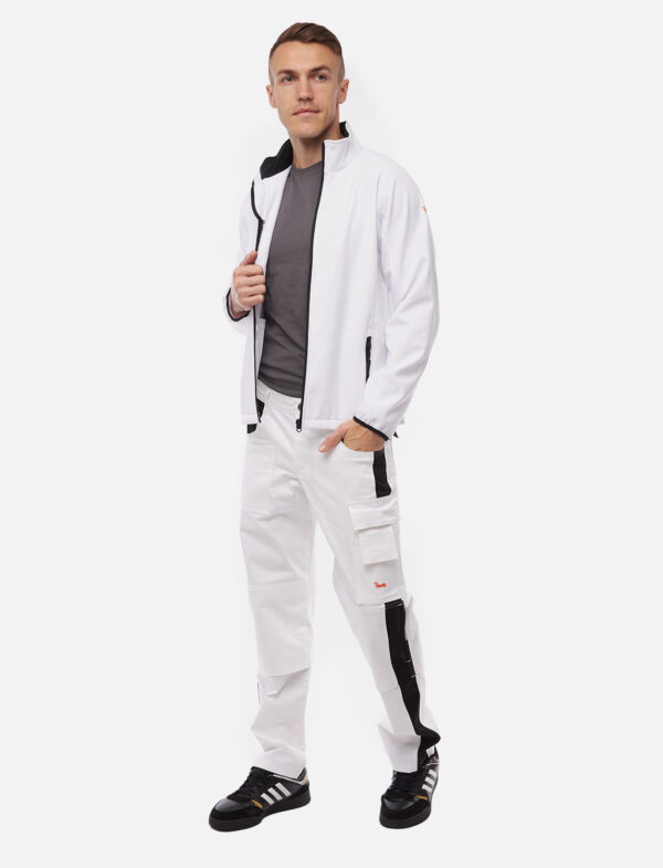 Die weiße power Stretch Herren Malerhose mit Kniepolstertaschen ist die perfekte Wahl für Maler und Stuckateure, die nach Komfort und Bewegungsfreiheit suchen. Mit ihrem elastischen Bund und dem Einsatz im Schritt bietet diese Arbeitshose eine optimale Passform und ermöglicht ein müheloses Arbeiten.