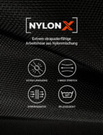 - Große Seiten- und Gesäßtaschen: Viel Stauraum für Werkzeuge, Handschuhe und Material.